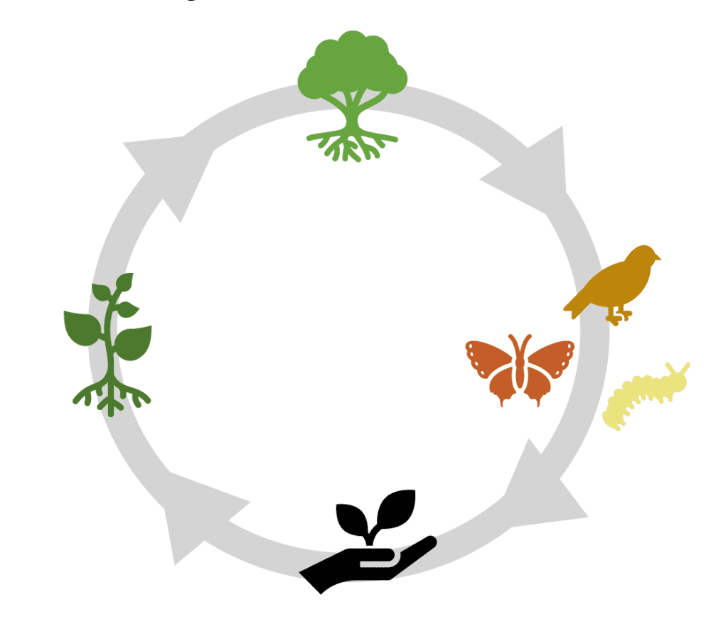 This design not only applies design principles for an aesthetically pleasing landscape but also provides ecosystem services that benefit plants,